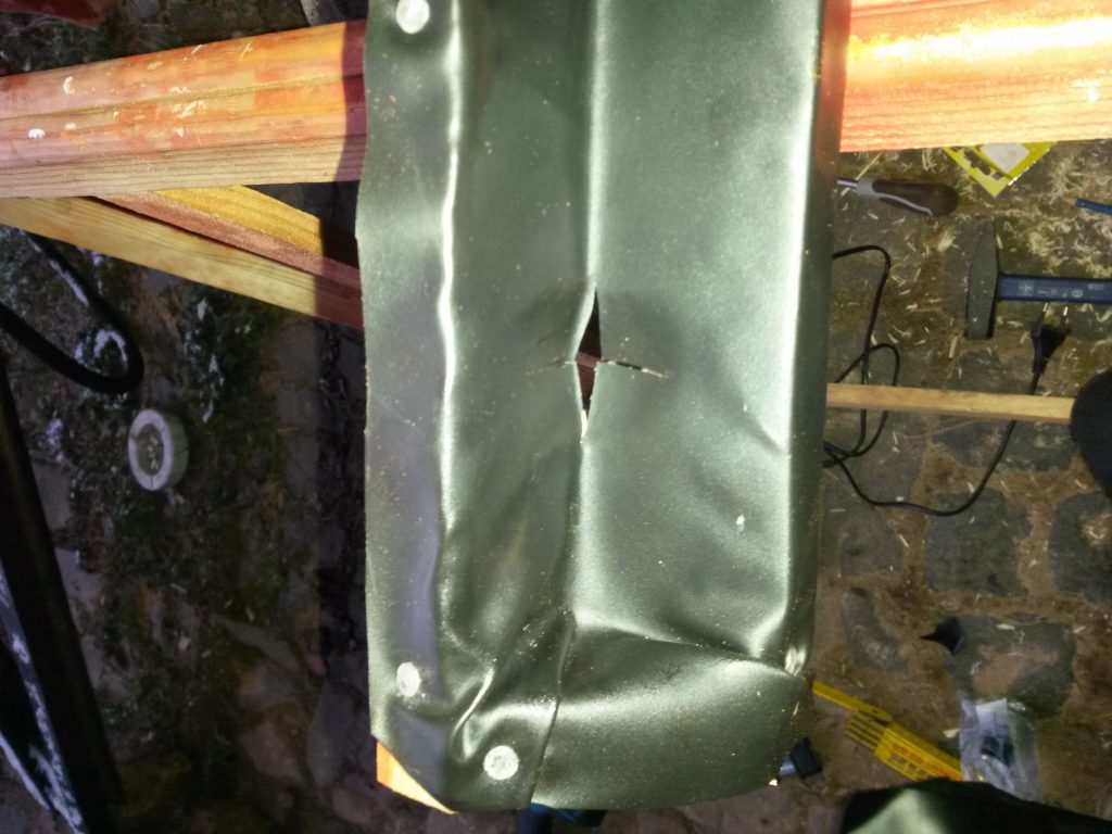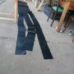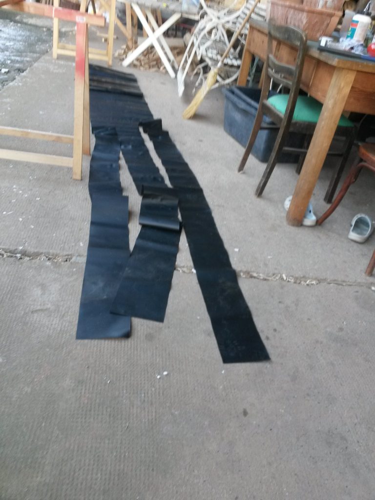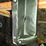 In die fertige Dachrinne haben wir dann noch eine Teichfolie eingeklebt, um das Holz besser zu schützen. Bei den derzeit niedrigen Temperaturen (Januar) lies sich diese leider nur sehr schwer verarbeiten. Mit Hilfe eines Heisluftföhns ging es dann aber doch…