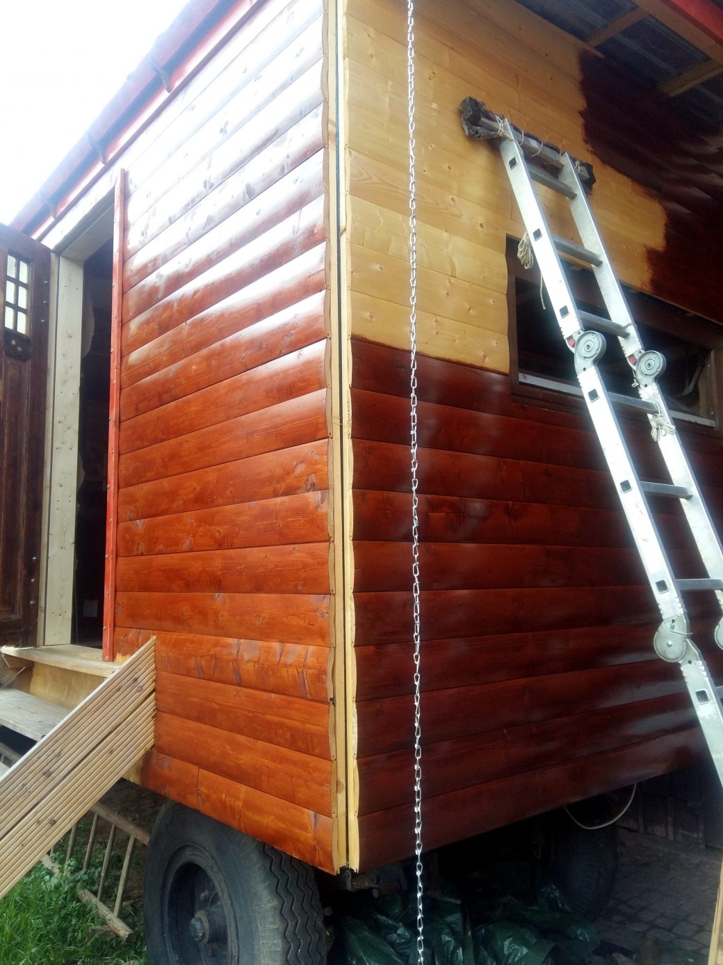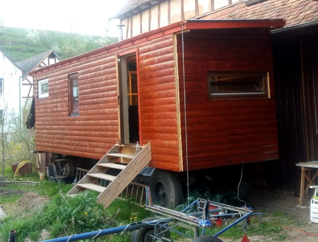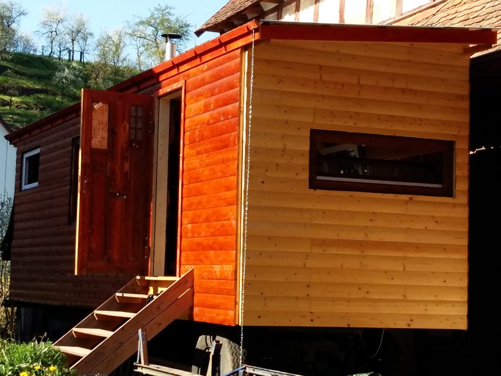 1. Warum habt ihr für das Dach keine durchgehenden Bleche genommen? Die bekommt man passend abgelängt in einem guten Dachdeckerhandel oder im Internet. Spart die Probleme mit Kriechwasser 😉 . Ich baue zwar kein Tinyhaus aber einen kleinen Wohnwagencontainer den ich auf meinem Anhänger verzurren kann, hier kommt als Dach eine LKW-Plane drauf, ist deutlich leichter und ist für meine Zwecke völlig ausreichend 😛